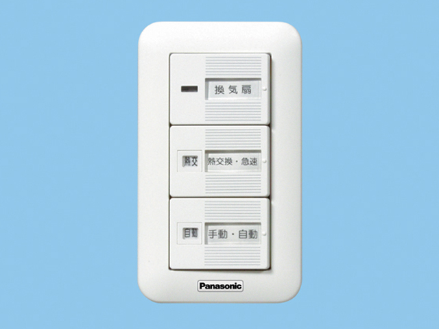 [機能/他] 制御部材換気扇スイッチ樹脂プレート 単相100V 4A(10W~用) ON-OFF、熱交換気-急速、自動-手動特長●定格4A●ON-OFFと熱交換気運転-急速運転とセンサーの自動運転-手動運転の切替用