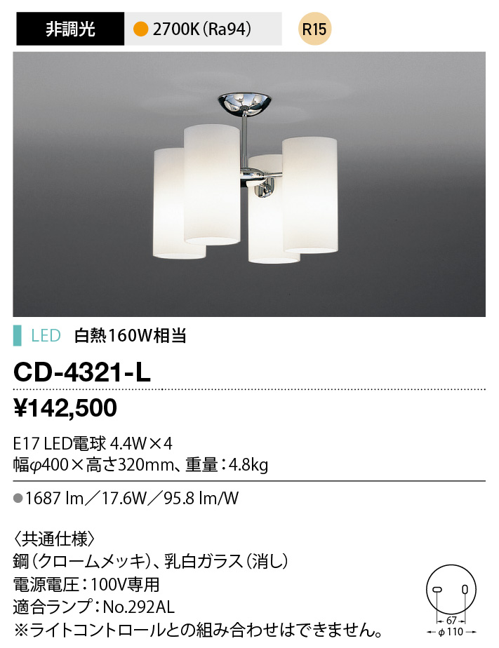 材質仕上:鋼(クロームメッキ)/乳白ガラス(消し)
