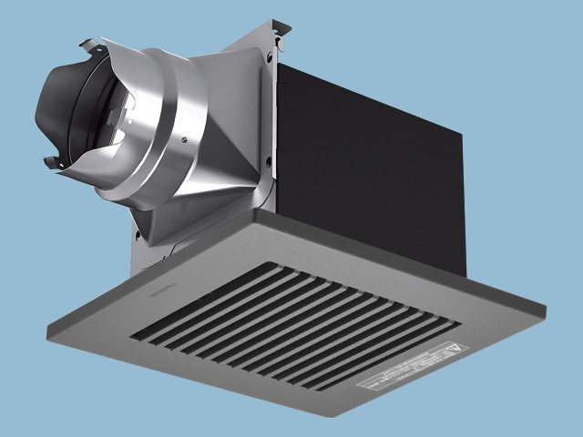 鋼板製の低騒音形本体とシンプルな樹脂製格子ルーバーとの組合せでインテリアにスッキリフィット