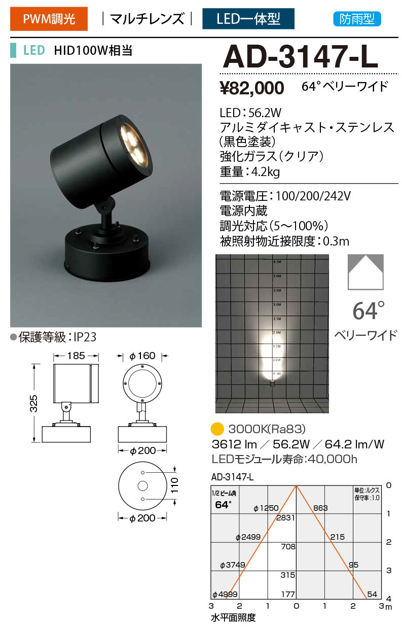 従来光源相当:HID100W相当