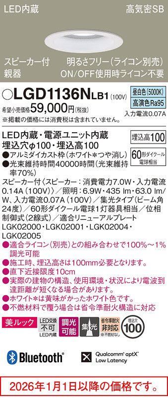 【適合ライトコントロール】リビングライコンNQ28770H (別売)