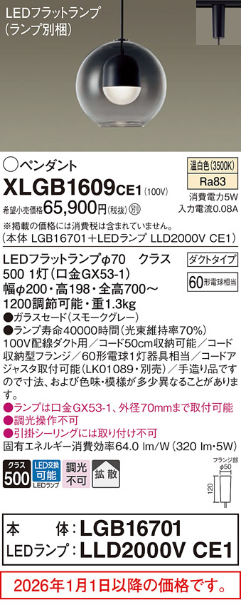 [機能/他] ランプ別梱包光源◆LEDフラットランプφ70 クラス500 1灯(口金GX53-1)◆色温度:3500 K◆光源寿命40000時間(光束維持率70%)寸法・質量◆幅:φ200 mm◆高:198 mm◆全高:700~1200 mm 調節可能◆質量:1.3 kg仕様・注意事項◆器具光束:320 lm◆電圧:100 V◆消費電力:5 W◆消費効率:64 lm/W◆【ガラスセード】スモークグレー◆吊下型、ガラスセードタイプ・拡散タイプ・ダクトタイプ◆Ra83◆100V配線ダクト用◆コード50cm収納可能◆コード収納型フランジ◆60形電球1灯器具相当◆コードアジャスタ取付可能(LK01089・別売)◆手造り品ですので寸法、および色味・模様が多少異なることがあります。◆入力電流(100V時):0.08 A◆調光操作不可◆引掛シーリングには取り付け不可