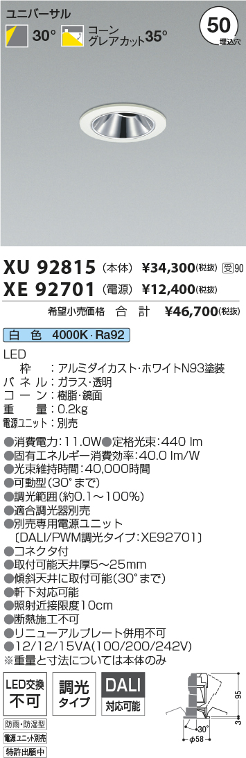 ●別売専用電源ユニット(DALI/PWM調光タイプ:XE92701)