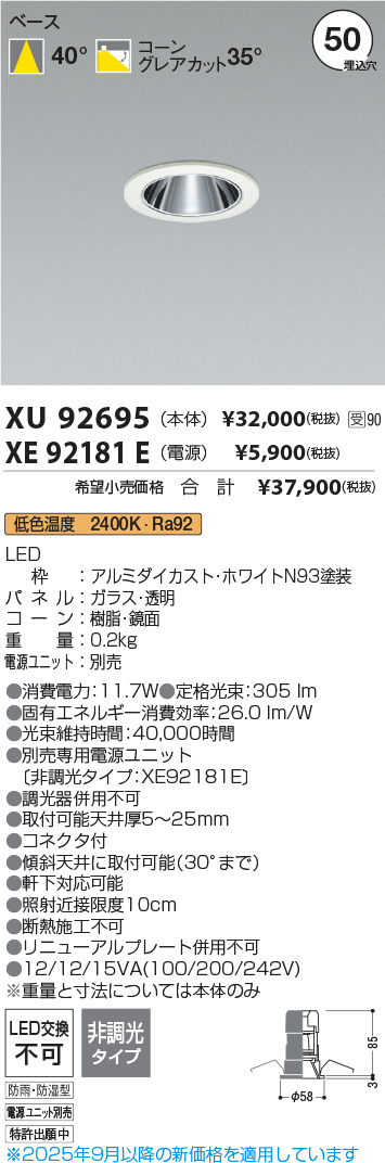 ●別売専用電源ユニット(非調光タイプ:XE92181E)
