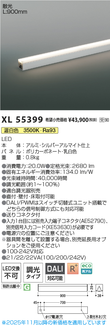 ●固有エネルギー消費効率:134.0 lm/W