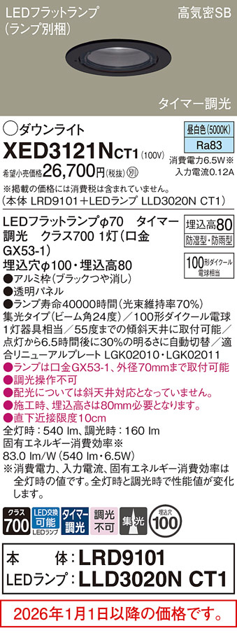 ◆天井埋込型、埋込穴φ100、浅型8H・高気密SB形・ビーム角24度・集光タイプ