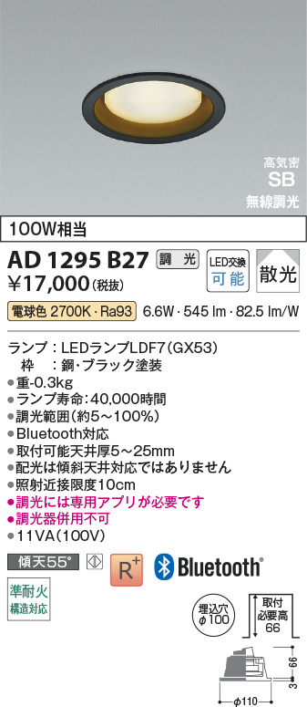 ●幅-φ110 出幅-3 埋込穴径-φ100 埋込高-66mm 重-0.3kg