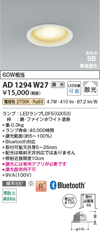 ●幅-φ110 出幅-3 埋込穴径-φ100 埋込高-66mm 重-0.3kg
