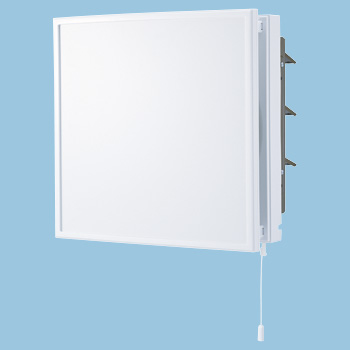 [機能/他] 事務所・居室用換気扇 引きひも連動式シャッターインテリアパネル形ルーバーセットタイプ埋込寸法:30cm角特長●羽根はワンタッチで着脱可能。●換気扇の内部に別売の埋込コンセントを取り付けて直接配線可能●基準周囲温度 : 5℃~40℃お願い●埋込スイッチ等との連動はできません。●高気密住宅、外風の強い場所や3階以上の中高層階には設置しないでください。