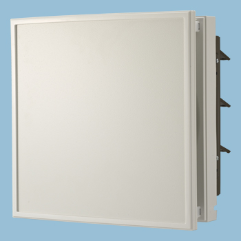 [機能/他] 事務所用・居室用換気扇 排気 遠隔操作式 電気式シャッターインテリアパネル形ルーバーセットタイプ埋込寸法:30cm角特長●羽根はワンタッチで着脱可能。●換気扇の内部に別売の埋込コンセントを取り付けて直接配線可能●引きひもスイッチなし●基準周囲温度 : 5℃~40℃スイッチ別売 : FY-SV06Wお願い●高気密住宅、外風の強い場所や3階以上の中高層階には設置しないでください