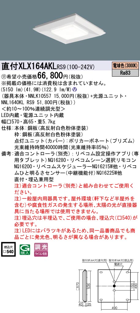 ◆注)埋込穴は半埋込で、ご使用の場合、埋込穴(□540)が必要です。
