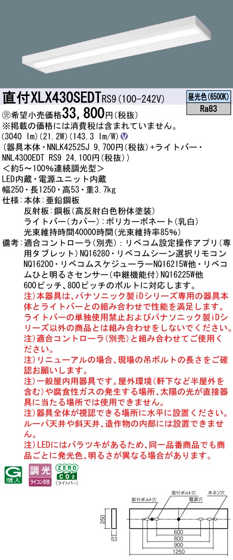 ◆注)本器具は、パナソニック製iDシリーズ専用の器具本体とライトバーとの組み合わせで性能を満足します。ライトバーの単独使用禁止およびパナソニック製iDシリーズ以外の商品とは組み合わせをしないでください。