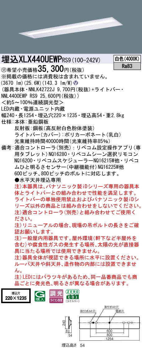 ◆注)本器具は、パナソニック製iDシリーズ専用の器具本体とライトバーとの組み合わせで性能を満足します。ライトバーの単独使用禁止およびパナソニック製iDシリーズ以外の商品とは組み合わせをしないでください。