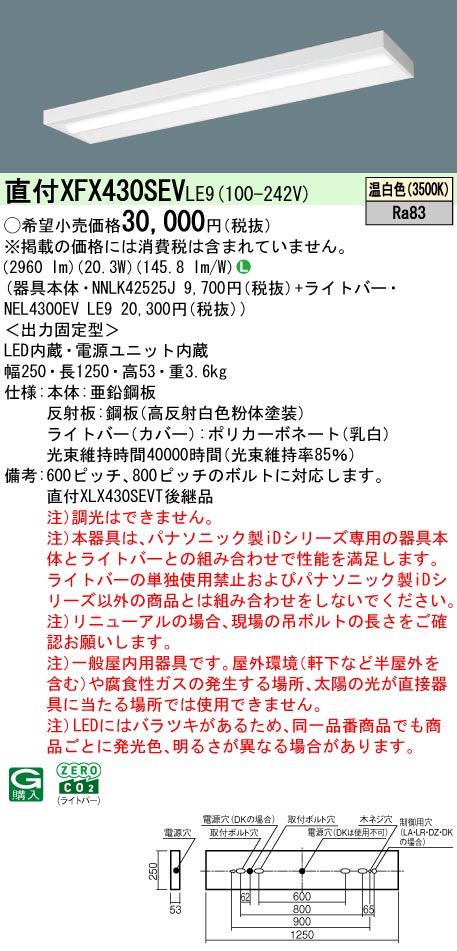 ◆注)本器具は、パナソニック製iDシリーズ専用の器具本体とライトバーとの組み合わせで性能を満足します。ライトバーの単独使用禁止およびパナソニック製iDシリーズ以外の商品とは組み合わせをしないでください。