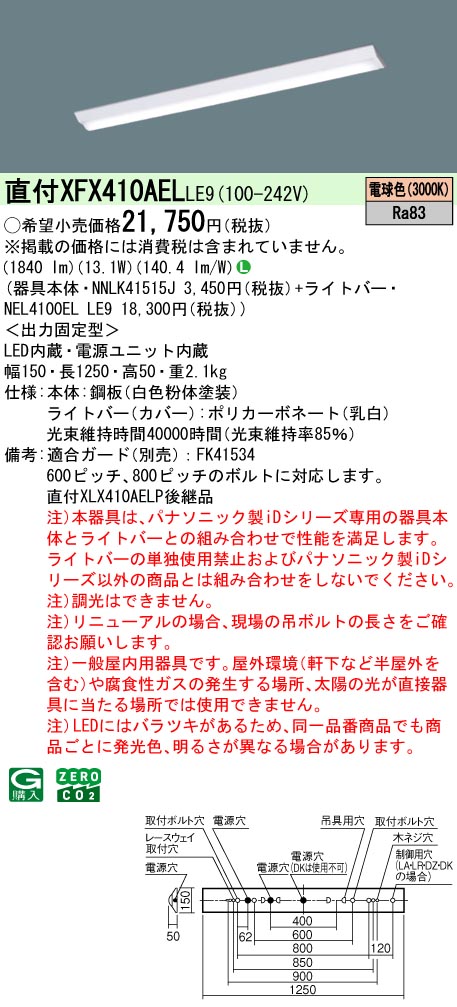 ◆注)本器具は、パナソニック製iDシリーズ専用の器具本体とライトバーとの組み合わせで性能を満足します。ライトバーの単独使用禁止およびパナソニック製iDシリーズ以外の商品とは組み合わせをしないでください。