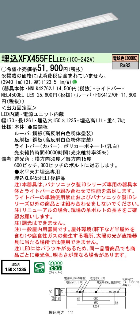 ◆注)本器具は、パナソニック製iDシリーズ専用の器具本体とライトバーとの組み合わせで性能を満足します。ライトバーの単独使用禁止およびパナソニック製iDシリーズ以外の商品とは組み合わせをしないでください。