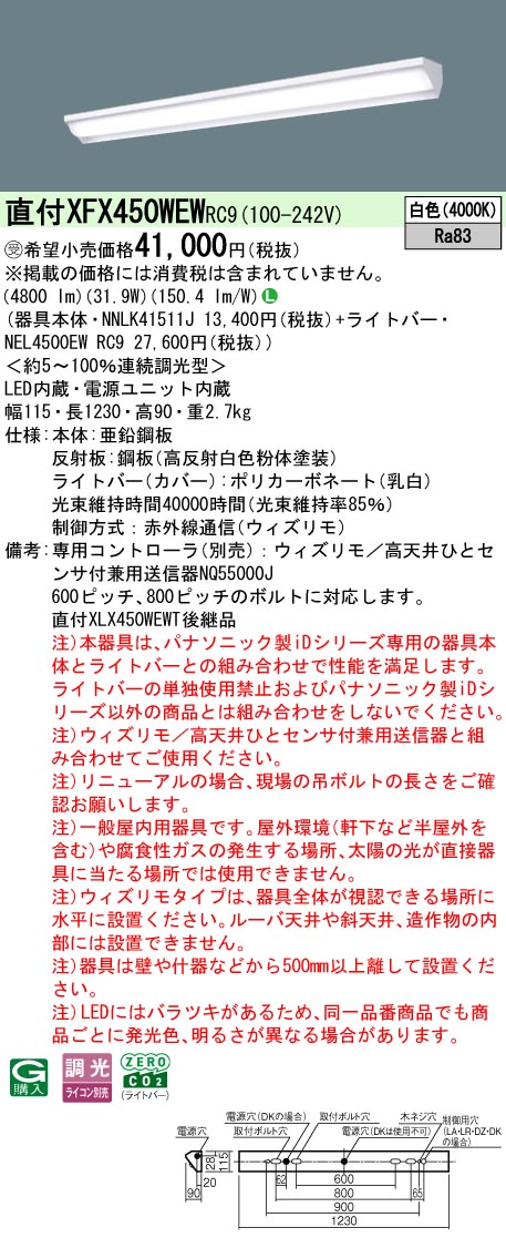 ◆注)本器具は、パナソニック製iDシリーズ専用の器具本体とライトバーとの組み合わせで性能を満足します。ライトバーの単独使用禁止およびパナソニック製iDシリーズ以外の商品とは組み合わせをしないでください。