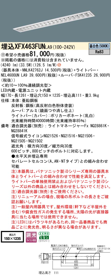 ◆天井埋込型、環境特化タイプ、高効率OAコンフォート(アルミルーバ)CLASSⅢ・フリーコンフォートタイプ・6900 lmタイプ・昼白色・調光