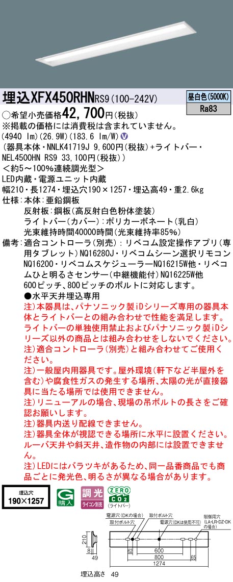 ◆注)本器具は、パナソニック製iDシリーズ専用の器具本体とライトバーとの組み合わせで性能を満足します。ライトバーの単独使用禁止およびパナソニック製iDシリーズ以外の商品とは組み合わせをしないでください。