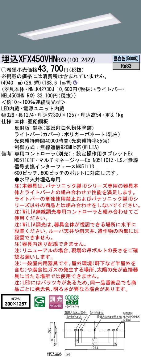 ◆天井埋込型、WiLIA無線調光・省エネタイプ・5200 lmタイプ・昼白色
