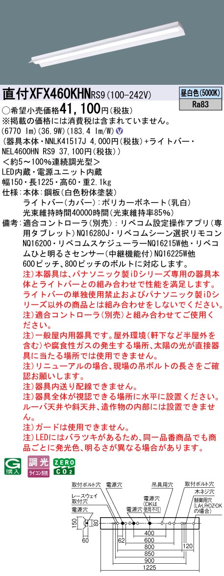 ◆注)本器具は、パナソニック製iDシリーズ専用の器具本体とライトバーとの組み合わせで性能を満足します。ライトバーの単独使用禁止およびパナソニック製iDシリーズ以外の商品とは組み合わせをしないでください。