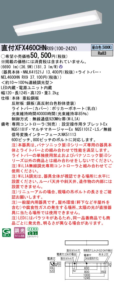 ◆注)本器具は、パナソニック製iDシリーズ専用の器具本体とライトバーとの組み合わせで性能を満足します。ライトバーの単独使用禁止およびパナソニック製iDシリーズ以外の商品とは組み合わせをしないでください。