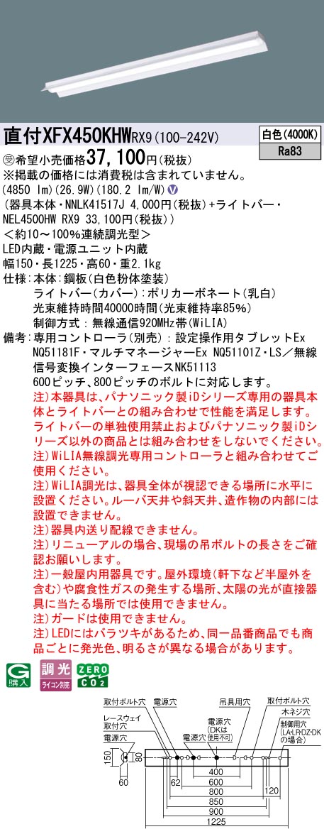◆注)本器具は、パナソニック製iDシリーズ専用の器具本体とライトバーとの組み合わせで性能を満足します。ライトバーの単独使用禁止およびパナソニック製iDシリーズ以外の商品とは組み合わせをしないでください。