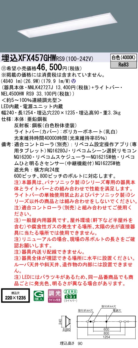 ◆注)本器具は、パナソニック製iDシリーズ専用の器具本体とライトバーとの組み合わせで性能を満足します。ライトバーの単独使用禁止およびパナソニック製iDシリーズ以外の商品とは組み合わせをしないでください。