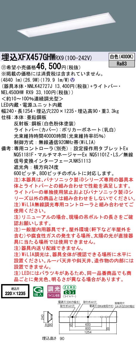 ◆注)本器具は、パナソニック製iDシリーズ専用の器具本体とライトバーとの組み合わせで性能を満足します。ライトバーの単独使用禁止およびパナソニック製iDシリーズ以外の商品とは組み合わせをしないでください。