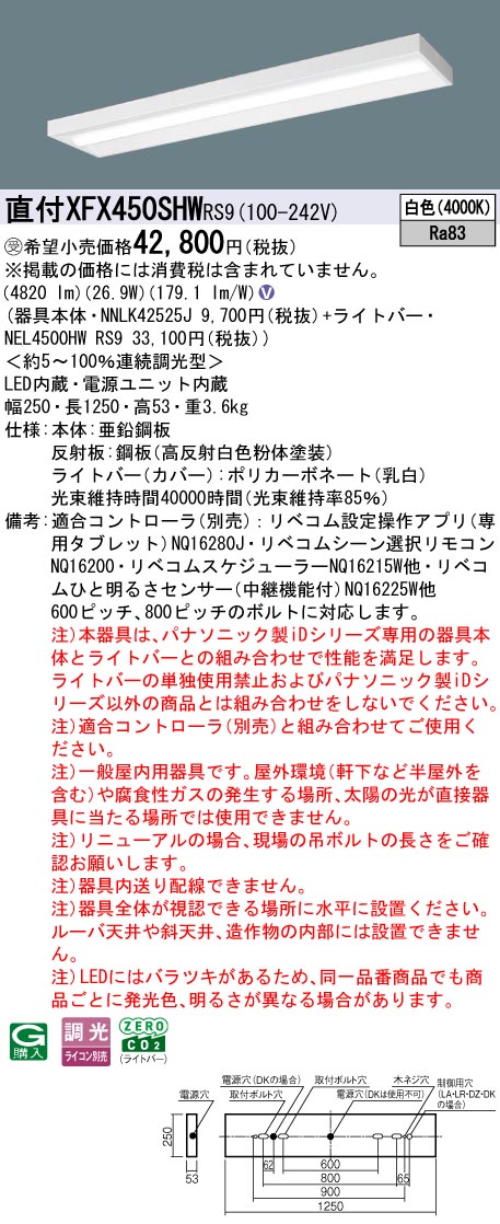 ◆注)本器具は、パナソニック製iDシリーズ専用の器具本体とライトバーとの組み合わせで性能を満足します。ライトバーの単独使用禁止およびパナソニック製iDシリーズ以外の商品とは組み合わせをしないでください。