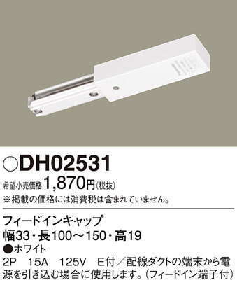 [機能/他] 寸法・質量◆幅:33 mm◆長:100~175 mm◆高:19 mm仕様・注意事項◆2P 15A 125V E付◆●配線ダクトの端末から電源を引き込む場合に使用します。(フィードイン端子付)