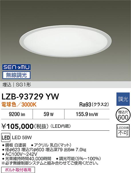 [機能/他] 埋込SG1形LED 59W 電球色/3000Kボルト取付専用径φ623 埋込穴φ600 埋込深79 出6mm7.0kg●AC100V~242V●光束維持時間40,000時間●調光可能(5%~100%)※必ず無線制御システムと組み合わせてご使用ください。定格光束 9200 lm定格消費電力 59 W固有エネルギー消費効率 155.9 lm/WRa93(クラス2)