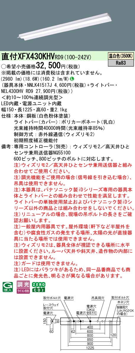 ◆注)本器具は、パナソニック製iDシリーズ専用の器具本体とライトバーとの組み合わせで性能を満足します。ライトバーの単独使用禁止およびパナソニック製iDシリーズ以外の商品とは組み合わせをしないでください。