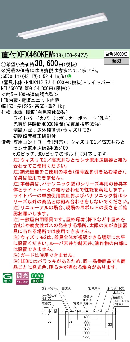 ◆注)本器具は、パナソニック製iDシリーズ専用の器具本体とライトバーとの組み合わせで性能を満足します。ライトバーの単独使用禁止およびパナソニック製iDシリーズ以外の商品とは組み合わせをしないでください。