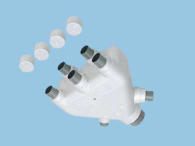 [機能/他] 専用部材分岐チャンバー(7分岐用)特長●Φ100mmのダクトを最大Φ50mmのダクト7個に分岐できます。しかも風量分配は均等です。●吊り下げ用ボルト(M8~10用)貫通穴付●材質:自己消化性発泡スチロール(アダプター部:PP樹脂)用途:建物全体