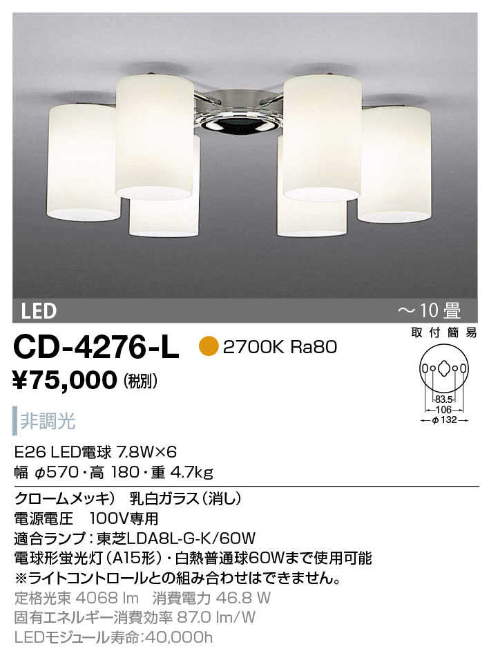 光源仕様:E26 LED電球 7.2W×6