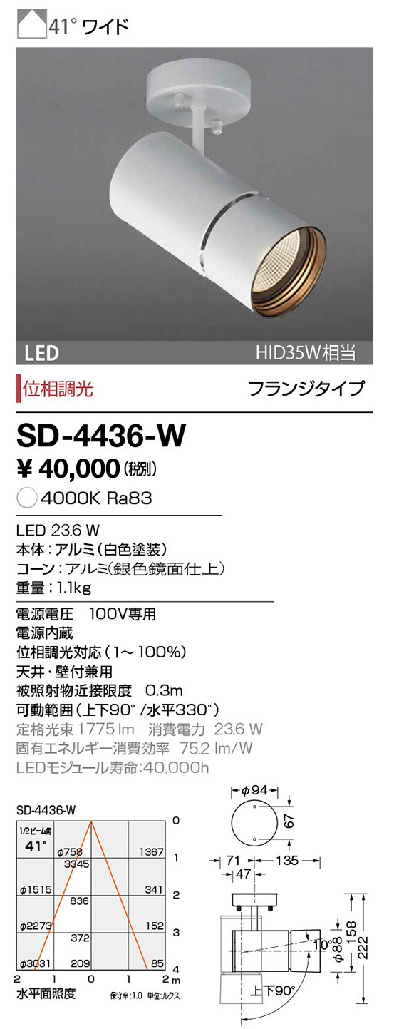 材質仕上:本体:アルミ(白色塗装)/コーン:ポリカーボネイト(銀色)