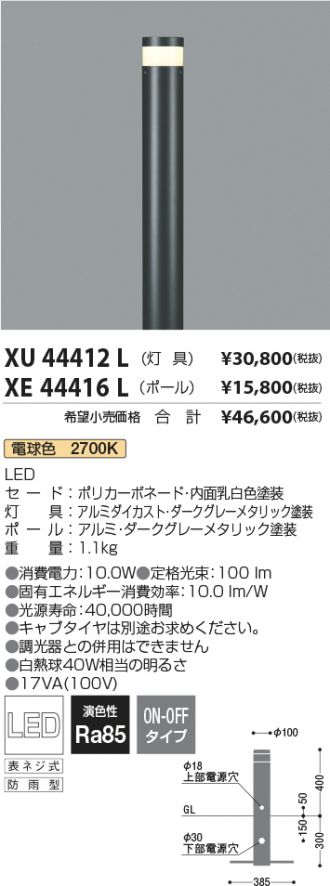 [機能/他] ポール:アルミ・ダークグレーメタリック塗装●別途キャブタイヤケーブルが必要です