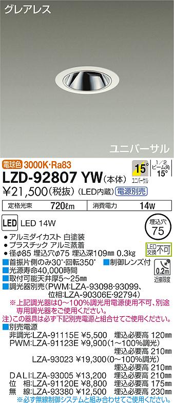 ■別売電源 非調光:LZA-91115E 埋込必要高 120mm PWM:LZA-91123E (1~100%調光)埋込必要高 210mm LZA-93023 (0~100%調光)埋込必要高 210mm DALI:LZA-93005 埋込必要高 210mm 位相:LZA-91120E 埋込必要高 175mm 無線:LZA-93380 埋込必要高 230mm