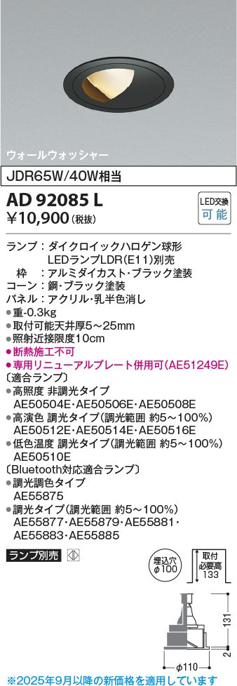 〔適合ランプ〕●高照度 非調光タイプ AE50504E・AE50506E・AE50508E●高演色 調光タイプ(調光範囲 約5~100%)AE50512E・AE50514E・AE50516E●低色温度 調光タイプ(調光範囲 約5~100%)AE50510E