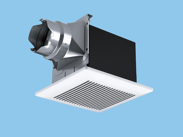 鋼板製の低騒音形本体とシンプルな樹脂製格子ルーバーとの組合せでインテリアにスッキリフィット