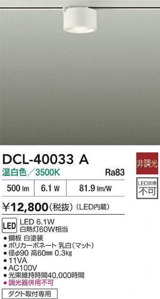 [機能/他] LED 6.1W 温白色/3500K鋼板 白塗装ポリカーボネート 乳白(マット)径φ90 高60mm0.3kg●AC100V●光束維持時間40,000時間●調光器併用不可●11VA定格光束 500 lm消費電力 6.1 W固有エネルギー消費効率 81.9 lm/WRa83白熱灯60W相当