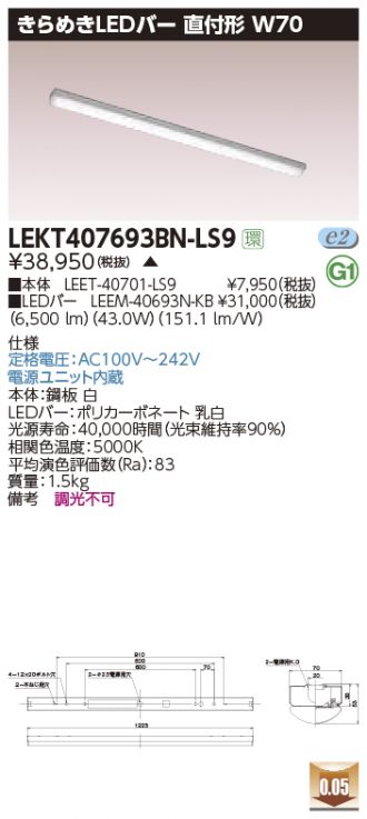 器具タイプ1 きらめきLEDバー 直付形 W70