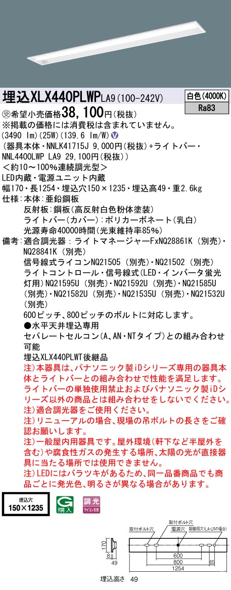 ◆注)本器具は、パナソニック製iDシリーズ専用の器具本体とライトバーとの組み合わせで性能を満足します。ライトバーの単独使用禁止およびパナソニック製iDシリーズ以外の商品とは組み合わせをしないでください。