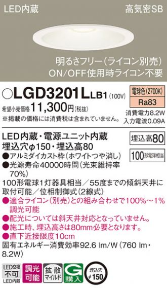 天井埋込型 LED(電球色) ダウンライト 浅型8H・高気密SB形・拡散タイプ(マイルド配光) 調光タイプ(ライコン別売)/埋込穴φ150 白熱電球100形1灯器具相当
