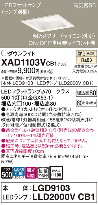 ◆LEDフラットランプφ70 クラス500 1灯(口金GX53-1)