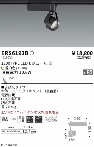 [機能/他] 〈電源内蔵〉1200TYPE LEDモジュール付温白色消費電力 10.6W24°■非調光タイプ本体:アルミダイキャスト(黒艶消)電源内蔵LED交換不可調光不可重:0.4kg定格光束:1181lm (111.4lm/W)12V IRCミニハロゲン球 50W 器具相当