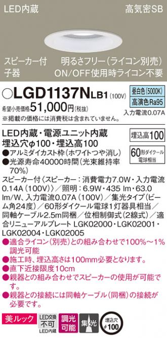 ◆照明:6.9W・435 lm・63.0 lm/W、入力電流0.07A(100V)