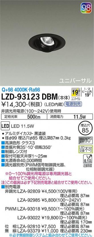 ■別売電源 非調光:LZA-92809(100V専用)埋込必要高 87mm LZA-92985(100~242V)埋込必要高 87mm PWM:LZA-93018(1~100%調光)埋込必要高 87mm LZA-93022(0~100%調光)埋込必要高 170mm 位相:LZA-92810 埋込必要高 87mm無線:LZA-93379 埋込必要高 230mm