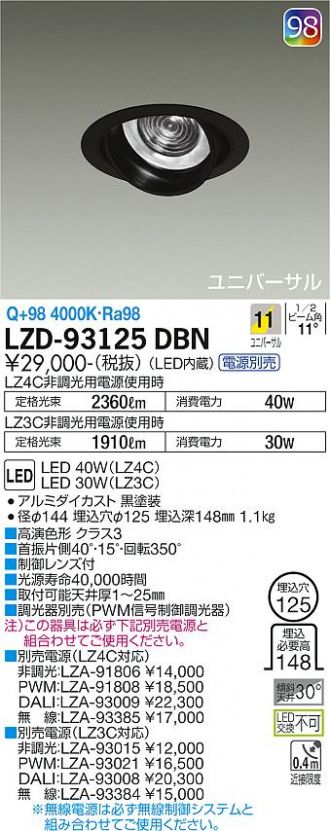 ■別売電源(LZ3C対応)非調光:LZA-93015 PWM:LZA-93021 DALI:LZA-93008 無線:LZA-93384